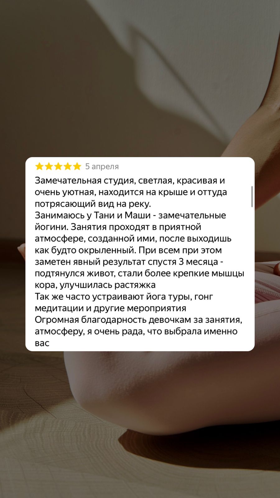 Уникальная возможность заняться йогой вместе с коллегами в уютной и закрытой атмосфере.